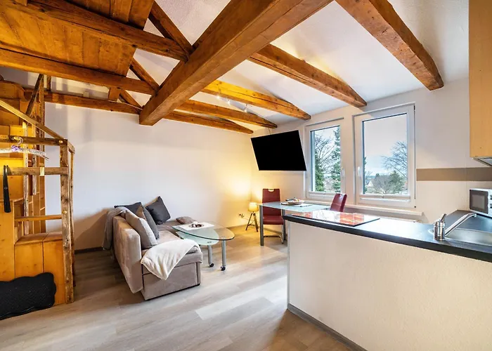 Diese 1-Zimmer-Apartments liegt in einer Entfernung von ungefähr 10 Autominuten vom Baumwipfelpfad Harz. Machen Sie einen ruhigen 20-minütigen Spaziergang ins Herz der Innenstadt von Hundheim. Das 45 m² große Apartment Im Harzer Vogelnest Meisennest liegt nur 2 km von der Spielbank Bad Harzburg entfernt.